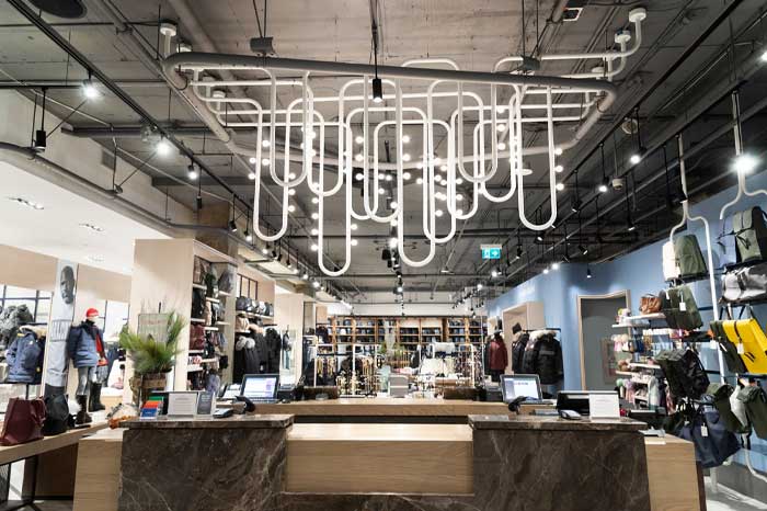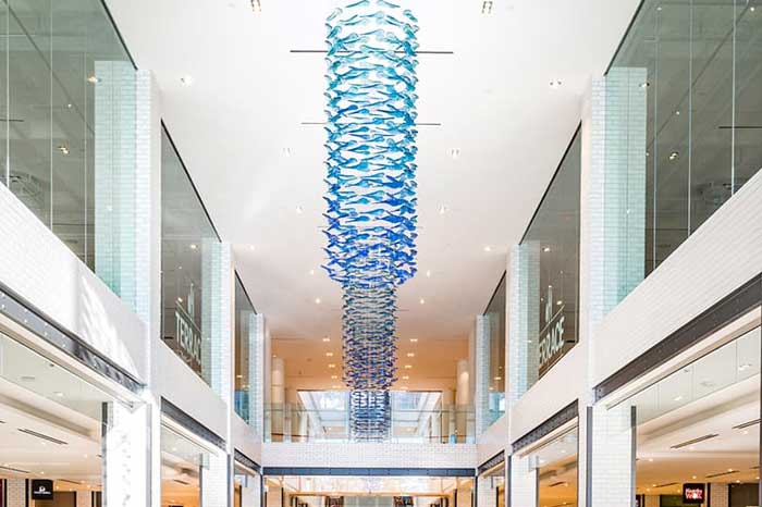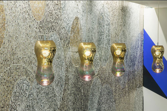 Providing a level of exquisite elegance and prestige, the brand famously tied to 007, Aston Martin showcases VISO's killer display of custom glass chandelier. The bespoke chandelier, being called by audiences as "champagne frame" weaves its way through the showroom, suspending over iconic, exquisite car models below.