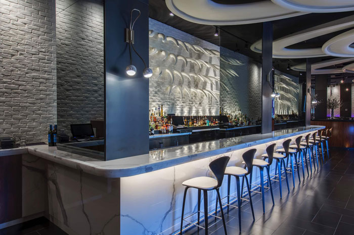 This is the second location for Sofia restaurant by Charles Khabouth, the first being in Toronto. Working with Studio Munge, Viso design-engineered and fabricated this feature lighting installation that continues from an indoor space to the outdoor bar area. This unique light fixture is designed to be wind-resistant for the Miami climate.