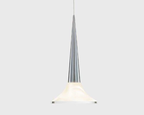 Alo is a sleek LED pendant made of frosted glass with clear accents. The frosted glass acts as a diffuser to soften the light output.