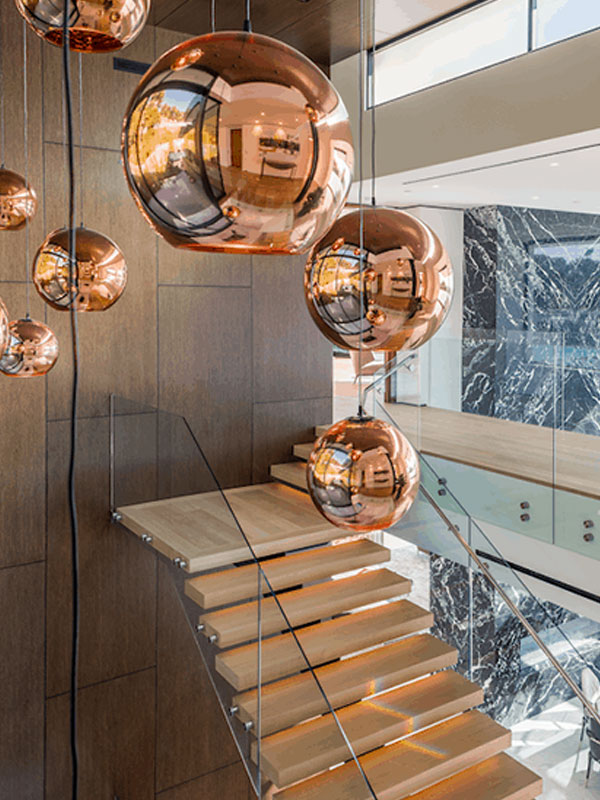 This Beverly Hills estate features our VISO Fort Knox overhead the staircase, The Ring canopy over the kitchen, and CUBIE clusters in the dining room. A perfect combination of simplicity and luxury.