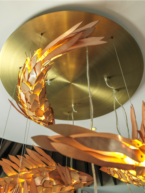 A simple drawing of floating goldfish was transformed into the centrepiece of this elegant residence. Our bespoke light fixtures seamlessly integrated into the interior design and reshaped the space into an elegant place of celebration.