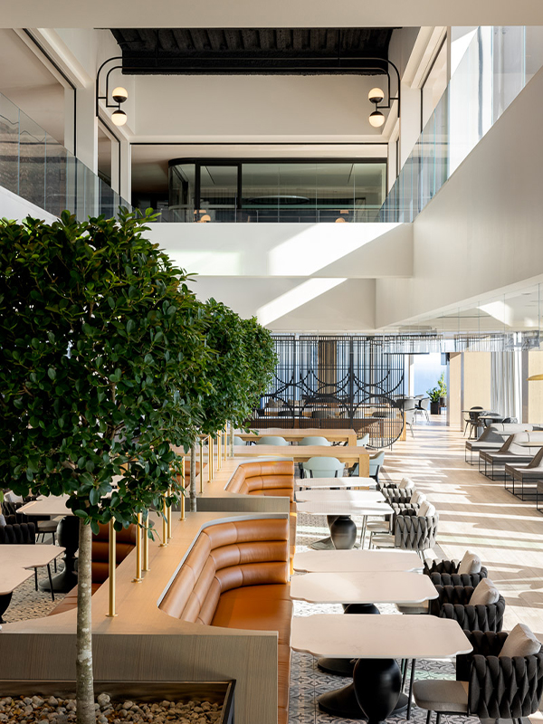 This Toronto HQ of established global consultant firm highlights a new model for a post-COVID workplace. Working with HOK, VISO design-engineered a custom lighting package to support this new welcoming and innovative space. The lighting design was thought out to also be mindful of people's circadian systems to improve staff health and well-being.