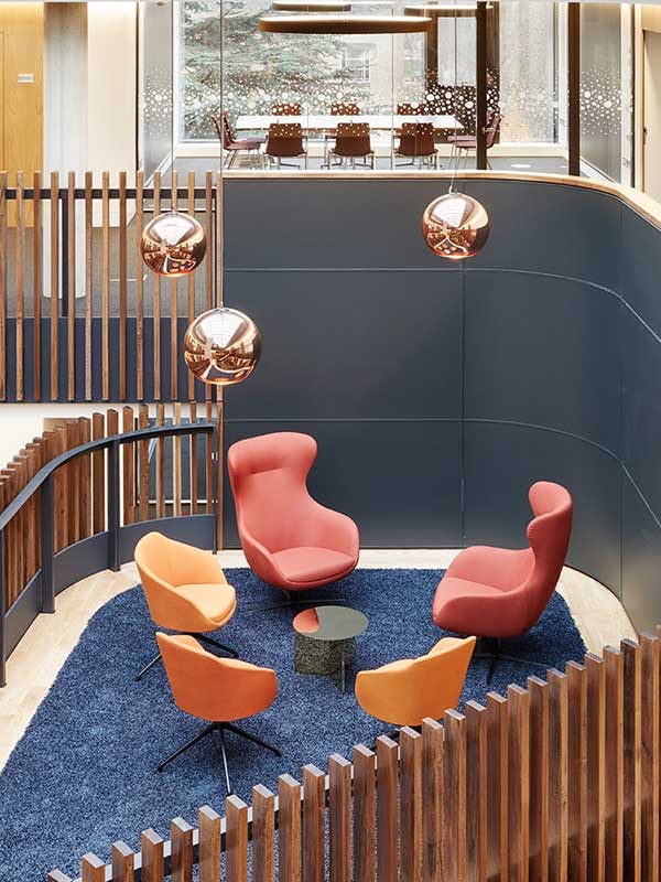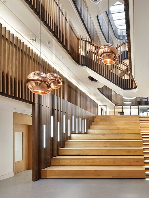 VISO Fort Knox pendants can be seen hanging from the unique wooden-accented staircases in the Oxford University’s Beecroft building.
