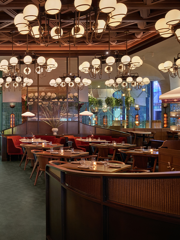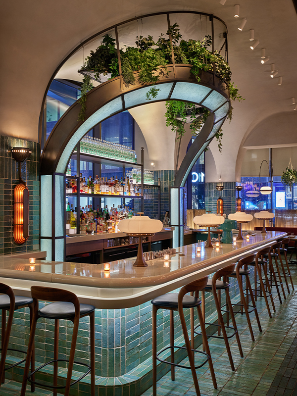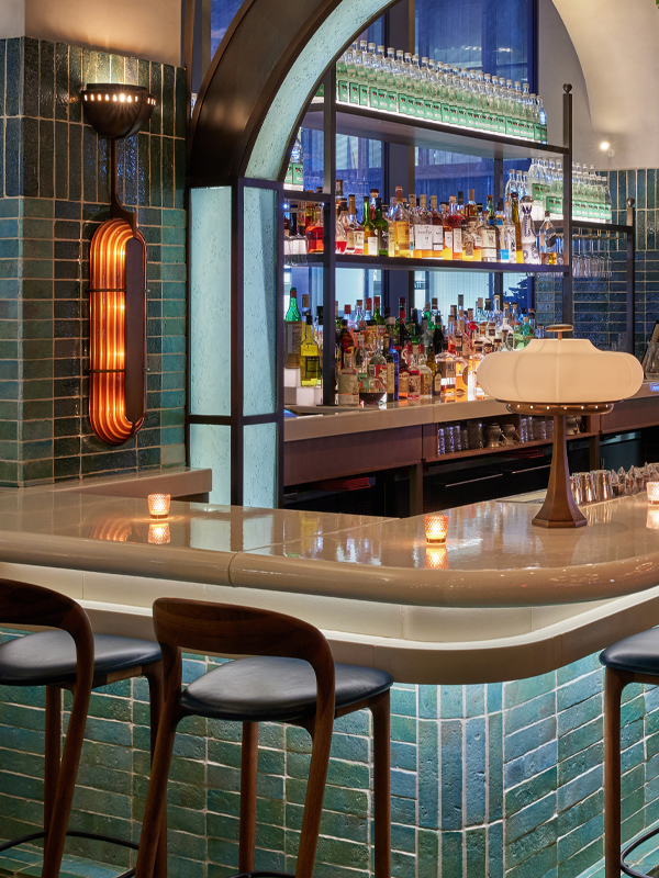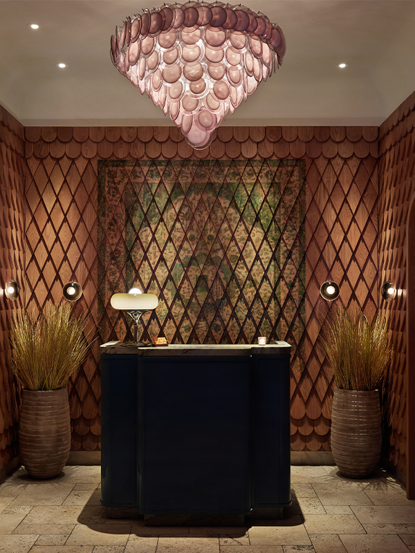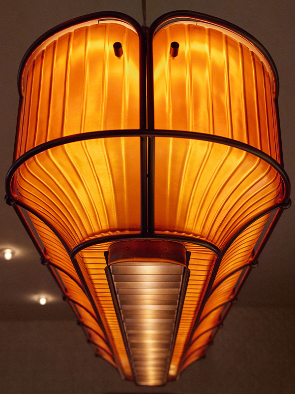 Working closely with AvroKO, VISO, in collaboration with GoodShop Manufacturies, incorporated amber resin shades, intricate hand-blown glass, solid wood, and specially crafted large reflective metals for a full custom lighting collection within the Pendry NY.